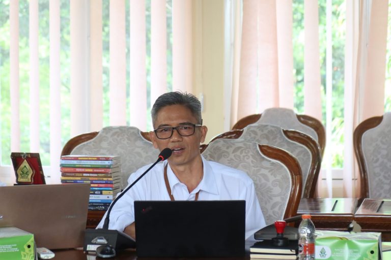 Kegiatan dilanjutkan dengan pemaparan materi oleh Wakil Dekan I FDK, Komarudin, M.Ag., yang mengulas implementasi Outcome Based Education (OBE) dan integrasinya dengan kebijakan Merdeka Belajar Kampus Merdeka (MBKM). Ia menekankan pentingnya keseragaman kurikulum dan penyesuaian masa studi sesuai Permenristekdikti No. 39 Tahun 2025, yang menetapkan beban minimal 144 SKS dalam delapan semester, namun tetap memberi ruang bagi mahasiswa untuk lulus dalam tujuh semester.
